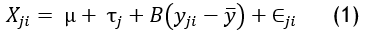 Where, Xji is the dependent variable that under jth observation and ith collection of categories. In covariates, the variable of yji had the ith observation and jth collection. The overall mean and the effects of treatments are determined by μ and τj respectively. The B is the regression coefficient and the average pre-test scores are denoted by y ̅. Finally, the error term (∈ji) offers the residual variance.