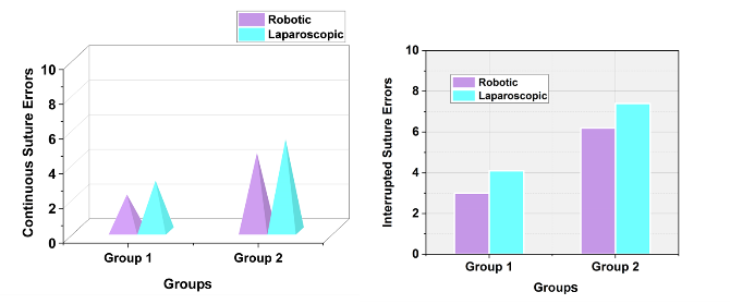 The research established that robotic simulation-based training was superior to laparoscopic training in the establishment of surgical competence among surgical trainees and medical students. Students trained on the robotic platform scored higher SCAT scores, committed fewer suture errors, and completed tasks quicker than students trained on the laparoscopic platform. Robotic training is also fewer fatiguing and enhances physical comfort, and therefore, it is ideal for training surgeons. According to the results, group 1 performed significantly better after robotic training with the robotic group's median SCAT score was 27,00, when the laparoscopic group’s median SCAT score was 18,00. Statistical comparison between the two training methods showed significant differences, which confirmed the findings. In general, the results suggested that robotic simulation was a more efficient and ergonomically beneficial training method, potentially enhancing skill acquisition and surgical performance for minimally invasive surgery. Disadvantages of the research include brief training duration, lack of realistic patient cases, and high student learning curve heterogeneity, which can affect generalizability. Future research could be aimed at long-term skill retention, real surgical competency, and cost-effectiveness of robot training in many surgical subspecialties.